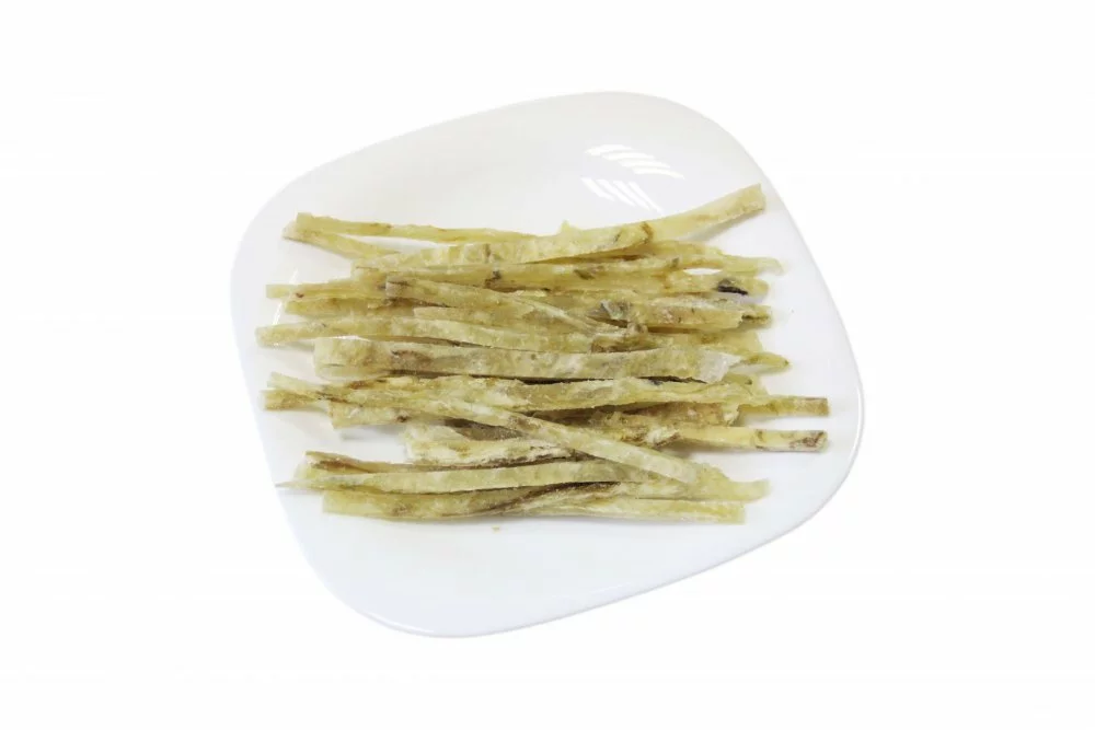 минтая. Соломка тунца имеет волнистую структуру и серебристый